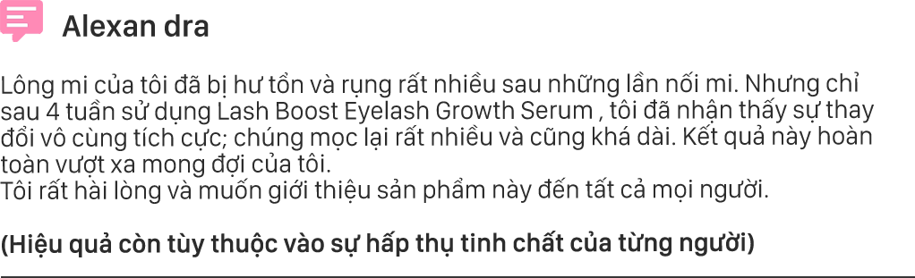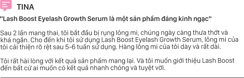 Thấu hiểu nỗi niềm khi Bạn không may sở hữu đôi mi thưa thớt, hư tổn, thậm chí không có lông mi sẽ làm khuôn mặt kém xinh ảnh hưởng đến vẻ ngoài của Phụ nữ. Hiểu được điều này thương hiệu  cho ra đời Tinh chất dưỡng Lash Boost - một tuyệt phẩm làm dài mi an toàn hiệu quả cao.