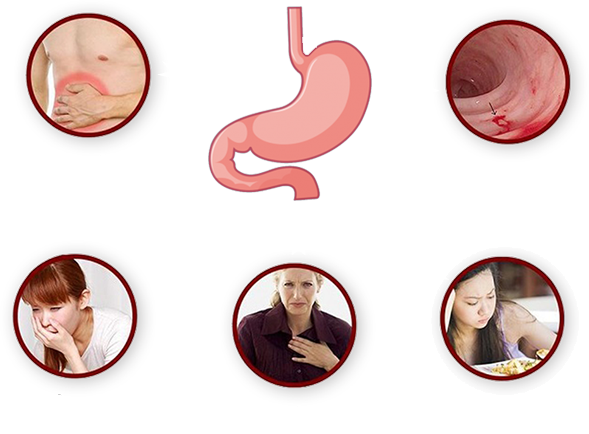 • Ăn không ngon, sút cân, buồn nôn, ợ chua, đầy hơi, đau thượng vị